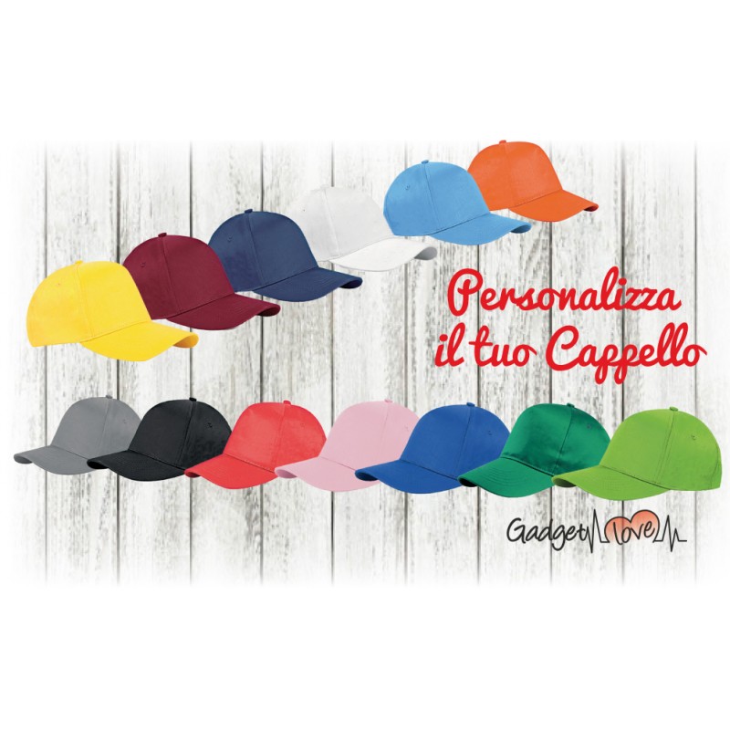 Personalizza il tuo cappellino 100% cotone con foto, immagini, disegni e scritte.