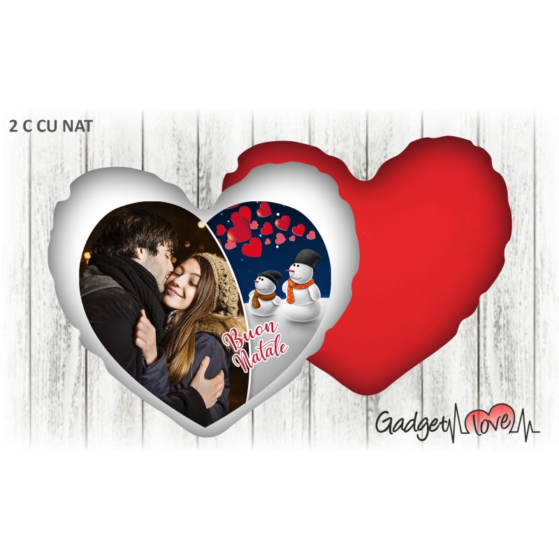 Invia una foto e personalizza un fantastico cuscino natalizio a forma di cuore 40x40.