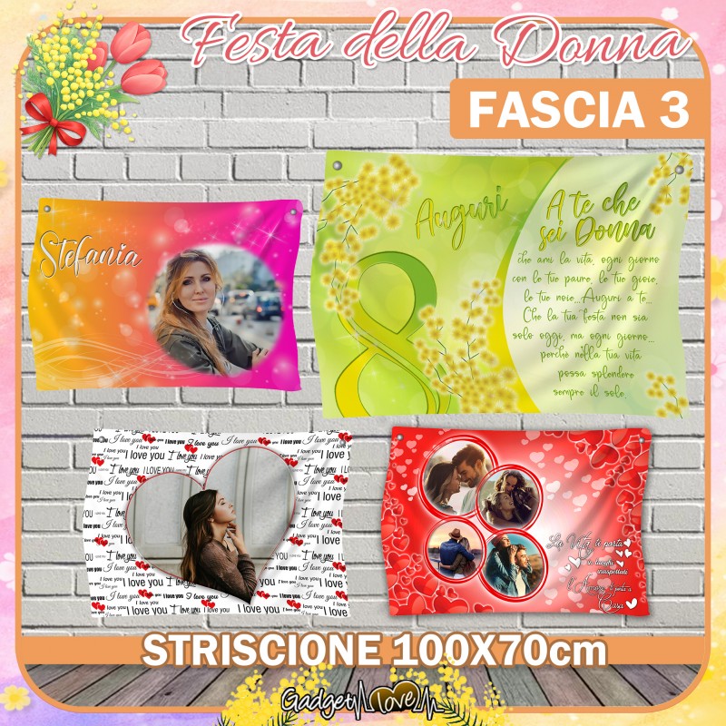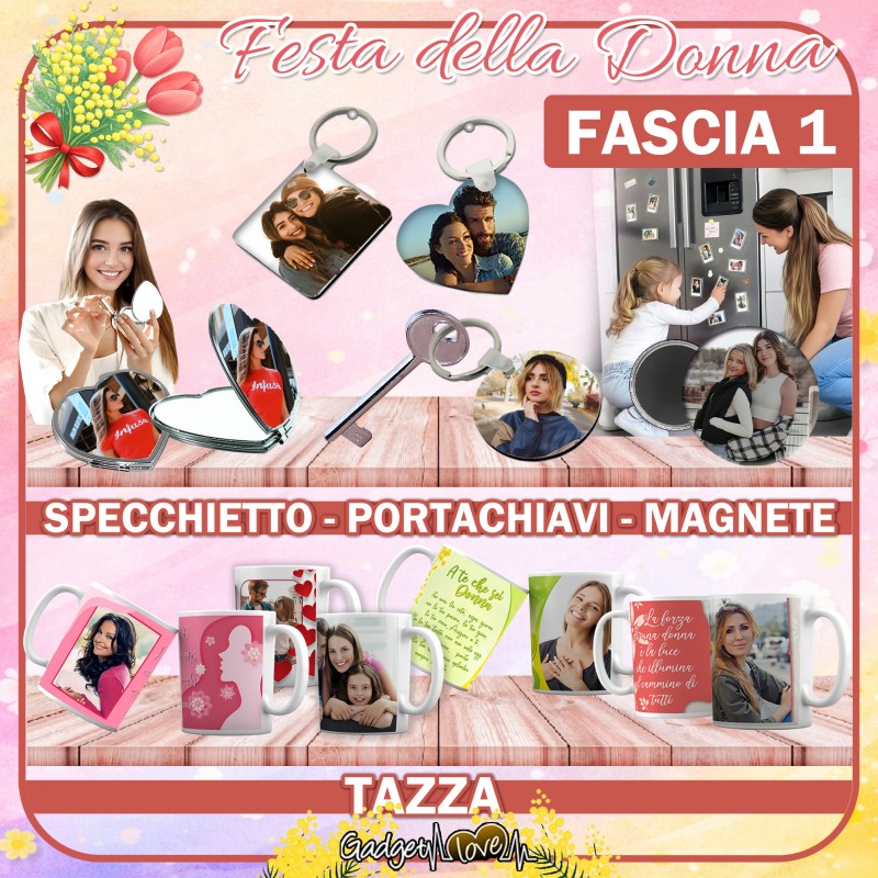 Promo Festa della Donna: scegli 3 gadget personalizzati (uno per fascia) e paghi solo 20€. Regalo completo, originale e perfetto per l’8 marzo.