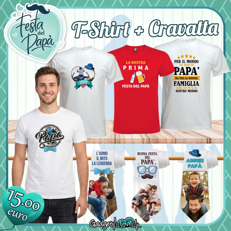 Set t-shirt e cravatta personalizzate con nome, logo o frase. Idea regalo originale e coordinata per eventi, feste e occasioni speciali.